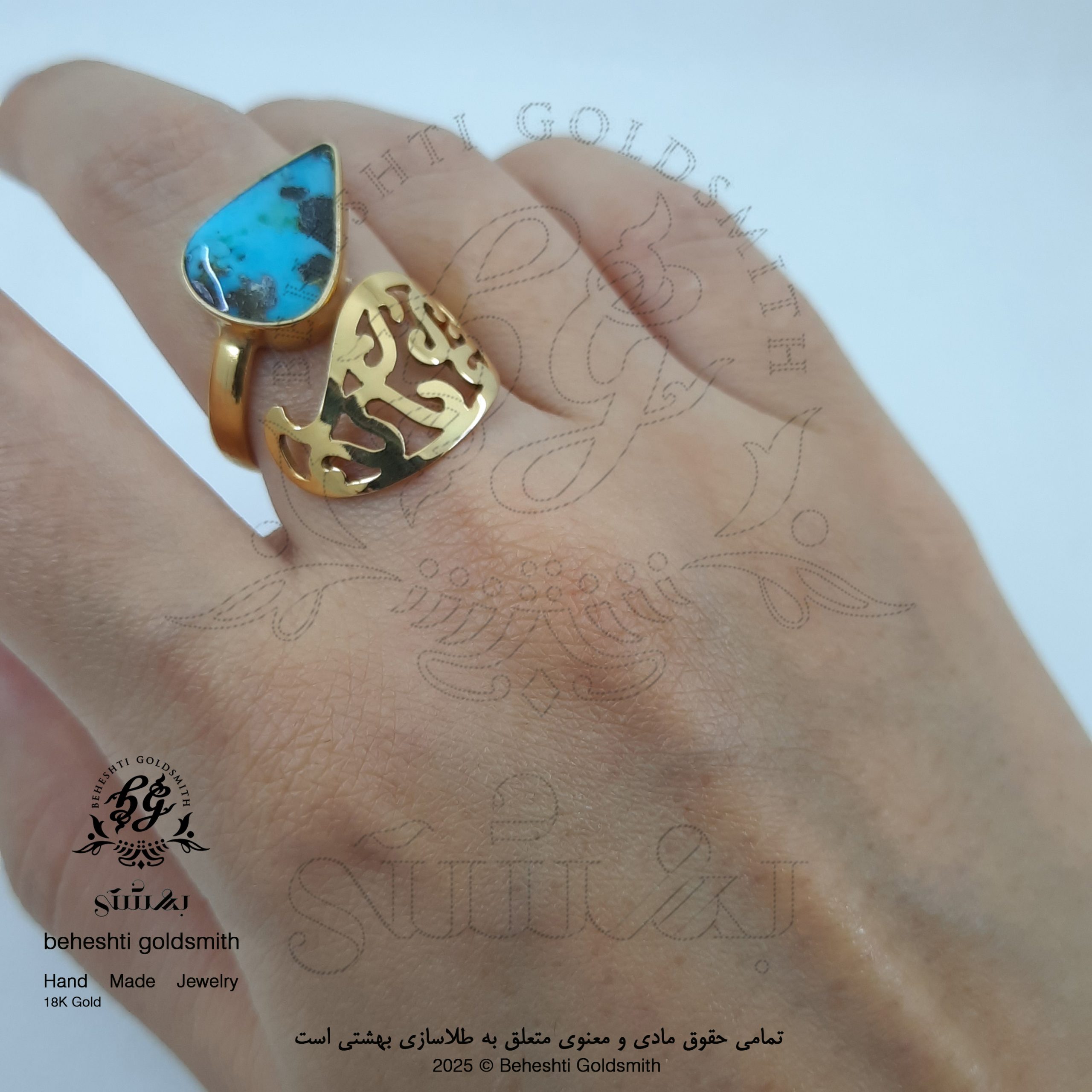 انگشتر طلا – انگشتر طرح اسلیمی – انگشتر طلا و فیروزه – فیروزه – انگشتر فیروزه – فیروزه نیشابوری