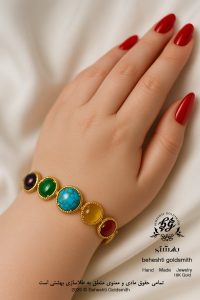 این دستبند به صورت سفارشی در طلاسازی بهشتی فقط با طلای 18 و 21 و22 عیار ساخته میشود. تعداد سنگ ها و نوع سنگ ها متناسب با سلیقه ی شما انتخاب و طراحی میشود. طراحی کاملا اختصاصی و منحصر به فرد میباشد و یک طرح به دو نفر فروخته نمیشود.